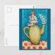 Rabbit takes solace in a book and some tea in this postcard. Original art handmade by Sue Clancy using ink and gouache.