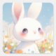 Rabbit with Galaxy Eyes in Colorful Wildflower Square Sticker