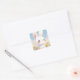 This magical watercolor design features an adorable white bunny rabbit with large, shimmering blue eyes that look like a sparkling galaxy. The artwork is rendered in a soft, painterly style, showing the fluffy bunny nestled within a vibrant field of multicolored wildflowers in shades of orange, blue, and yellow. The serene background features a soft blue sky with light, hazy clouds and a gentle dusting of white speckles that add a touch of celestial whimsy to the scene. Every detail, from the bunny’s soft pink blushing cheeks to the delicate petals of the surrounding garden, is captured with a sense of "kawaii" charm and wonder. This starry-eyed rabbit is a wonderful choice for adding a touch of magic to a school notebook or a personal bullet journal. You can place it on a laptop or tablet case to create a dreamlike workspace that brings a bit of nature-inspired fantasy to your day. It would look absolutely lovely decorating a child's bedroom window or used as a sweet embellishment for a springtime scrapbooking layout. Because of the bright and cheerful floral colors, this is also a great option for sticking onto a reusable water bottle or a gardening journal. You could even use it to brighten up a simple phone case or to decorate a special greeting card for an animal lover. This charming bunny illustration is a versatile choice for spring-themed baby showers, celestial birthday parties, or as a sweet branding accent for floral shops and children's boutiques.