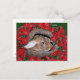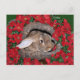 Sandy Flemish Giant bunny rabbit in a hollow log surrounded by poinsettias photo Christmas postcard