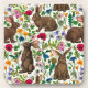 Hand-drawn rabbits and woodland flora, ferns mushrooms and beriies and bugs