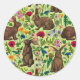 Hand-drawn rabbits and woodland flora,ferns mushrooms and beriies and bugs