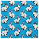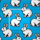 A repeating pattern with a rabbit motif arranged in alternating directions.