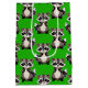 Cute little cartoon Raccoon Pattern Design on a Green background