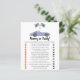 Race car theme baby shower invitation card featuring watercolor illustrations of a purple (violet) vintage car and black - white race flag. "Race on over for a baby shower."