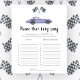 Race car theme baby shower invitation card featuring watercolor illustrations of a purple (violet) vintage car and black - white race flag. "Race on over for a baby shower."