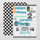 Rev up the excitement with this editable Race Car Birthday Invitation! Featuring the fun phrase “Vroom… Vrooom Start Your Engines For”, bold tire tracks, and a cool racing car in black, blue, and green, this invitation is perfect for boys ages 2 to 10. Easily customize the child’s name, age, date, time, and party details. Ideal for racing lovers and high-speed birthday themes!