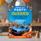 Get ready for high-octane fun with this bold and colourful race car birthday invitation! Featuring a powerful blue muscle car with flames speeding through a thrilling racetrack scene, this invitation is perfect for little speedsters celebrating their big day.