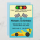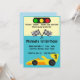 This cute kids race car birthday party invitation features a race car and chequered flags.