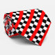 For racing fans, this cool tie has diagonal stripes of black and white checks alternating with red.