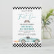 This adorable invitation features a blue watercolor race car with a flame detail.