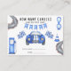 Race car theme baby shower invitation card featuring watercolor illustrations of a race car.