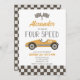 Made For Speed yellow race Car 4th Birthday Invitation with blue retro race car.
