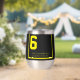 Black background with yellow accents. Traditional style for horse number 6. Available on stainless or a white finish.