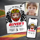 This fun birthday party invitation is perfect for your child's racing car-themed party. You can upload a photograph of them so it looks like they're wearing a racing helmet!