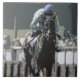 Racehorse With Jockey In Blue, Ceramic Tile. Digital Art. Thoroughbred Steeplechase racehorse with jockey in blue cap, gallops towards the finish line at Shawan Downs, Maryland. Fully customisable, make it your own. Edit the wording to your liking, or remove the text entirely.