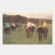 Racehorses at Longchamp (1873-5) by Edgar Degas is a vintage impressionist fine art painting featuring jockeys on race horses. The men are making their way to the starting line.