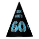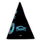 No need to spare a motorsports' fans blushes on his milestone birthday! You can change the example 60 to any number to match his age. This black party hat with its fun light blue lettering and figures also has faux neon race cars on either side. Minimalist enough for adult men to party in while still being the centre of attention.