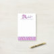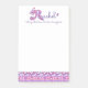 Rachel personalised R name meaning or message post it notes. Initial R monogram name and meaning in purple, pink and white. Ideal for a personalised gift for a girl who has a name that starts with the letter R. This example reads Rachel Strong willed, clever and kind, a loving friend or you can customise the text with your own name or message if required. Makes a unique office celebration gift. © Decorative letter R flowers with hearts hand drawn and pattern uniquely created by Sarah Trett for www.mylittleeden.com