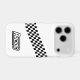 This iPhone case is shown with a black and white checkered racing print.