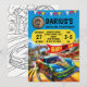 Zoom into excitement with this thrilling race car adventure design, featuring dynamic race cars speeding on a vibrant track with bold red and blue accents. Perfect for any child’s special celebration, this customisable piece brings a high-energy vibe to the party. With its action-packed style, it’s ideal for an unforgettable event. Includes space for your event details and RSVP info. Personalise it to create an exciting keepsake for your little racer and guests!