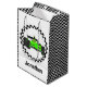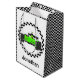 Green Racing Car Chequered Pattern Design Gift Bag with customisable text.