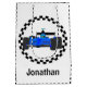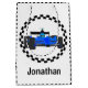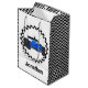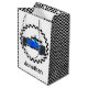 Blue Racing Car Chequered Pattern Design Gift Bag with customisable text.