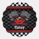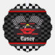 Racing Car Design Paper Ornament Card with customisable text on both sides.
