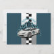 Racing car green, black & white birthday invitation