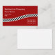 Automotive business cards design created with black and white chequered pattern in the background and sleek modern design for the automobile services industry or racing theme.