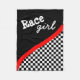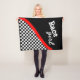 If you're a girl and you love auto racing then you'll love this fleece blanket featuring a black and white chequered pattern design with a red stripe on a black background.