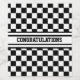 Matching racing winners flag with words expressing praise for an achievement or good wishes on a special occasion.