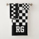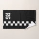 Racing Flag Black White Chequered Personalised monogram bathroom towels from Ricaso