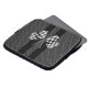 A crossed chequered racing flags applique rendered as a chrome like applique on a carbon fibre style design print. The carbon fibre and black stripes look suits automotive, modern, and industrial tastes and the 3D simulation of the flags makes for a dynamic looking design.
