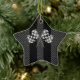 Racing Flags on Black Stripes Carbon Fibre Style Ceramic Tree Decoration