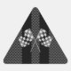 Racing Flags on Black Stripes Carbon Fibre Style Triangle Sticker