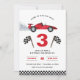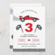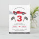 Racing into 3 with this red race car 3rd Birthday Party Invitation.
