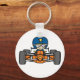 Boy driving a racing go kart with a yellow star on the hood and helmet.