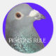 Racing pigeon head blu background, PIGEONS RULE Classic Round Sticker