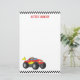 Vroom! It is a fiery red racing monster truck with a flames on the side for the little racer! A cool race vehicle design for boys who love racing toy vehicles. Current text reads "Little Racer" which you can personalise with child's name.