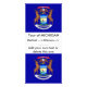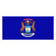 Crafted with attention to detail, this rack card proudly showcases the flag of Michigan, featuring a blue field with the state coat of arms centred, depicting an elk and moose supporting a shield with a depiction of a man standing on a peninsula and holding a long gun. The design is completed with the Latin motto "Si Quæris Peninsulam Amœnam Circumspice" (If you seek a pleasant peninsula, look about you).