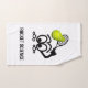 A funny tennis player graphic by artist/designer Charmaine Paulson on a hand towel.