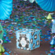 Racoon baby shower design is cute and sweet for a woodland animals theme baby shower and great for a boy with the blue background! The fun stuffed animal style cartoon is a great look for a new baby celebration!