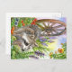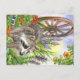 Racoon By Flower Garden Postcard