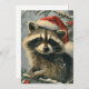 Celebrate the season with our festive Christmas card featuring an adorable racoon donning a charming Santa hat. This whimsical design captures the spirit of joy and merriment, making it the perfect way to send warm holiday wishes to your loved ones.