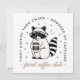 Feral coffee club racoon lover funny sarcastic chaotic girl humour quotes. Cool caffeinated wild animal drinking coffee and wearing sunglasses aesthetic gift small white print card.