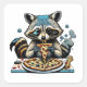 Racoon eats Pizza Square Sticker