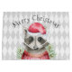 A whimsical Christmas holiday design with an adorable woodland racoon in Santa hat and winter sweater. A classic pastel grey-beige and white harlequin pattern forms the background of the design. The Merry Christmas text may be personalised with your own chosen text, or keep the sample text as is. It's a great choice for both young and old!