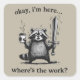 Racoon Okay I'm Here Where's The Work Coffee Square Sticker