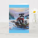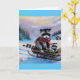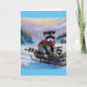 Blank greeting card with a couple of free wheeling "Having FUN" kinda raccoons on their sled, flying down the snowy hill. From my original art.